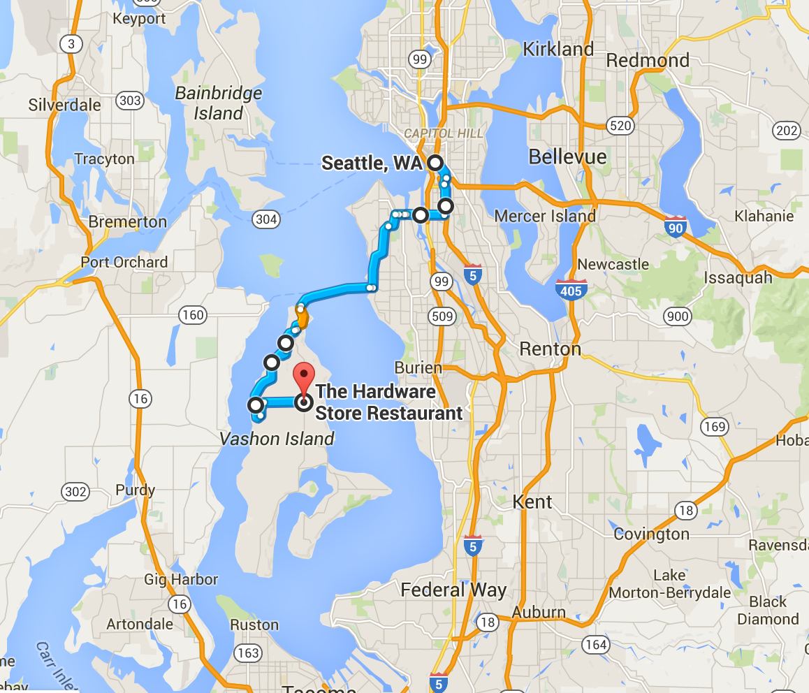 Everyone met at my house at 10:15am. From there, it is a short ride to West Seattle where we’d catch the ferry. We avoided Interstate 5 by using arterials and took the lower West Seattle bridge on our way to the Fauntleroy ferry terminal. The crossing is about 20 minutes and the final leg of the ride to the restaurant is also about 20 minutes (if you take the long way like we did).