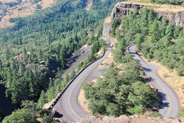 Hwy 30 gets really twisty near the Rowena Crest Viewpoint. 🙂